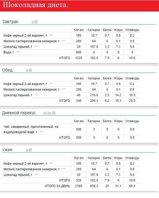 План шоколадной диеты на три дня:
